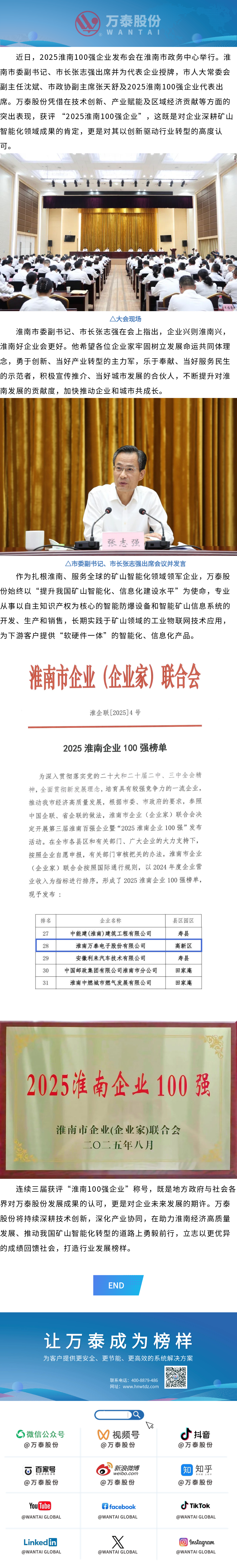 再登榜單!萬泰股份獲評“2025淮南100強企業(yè)”