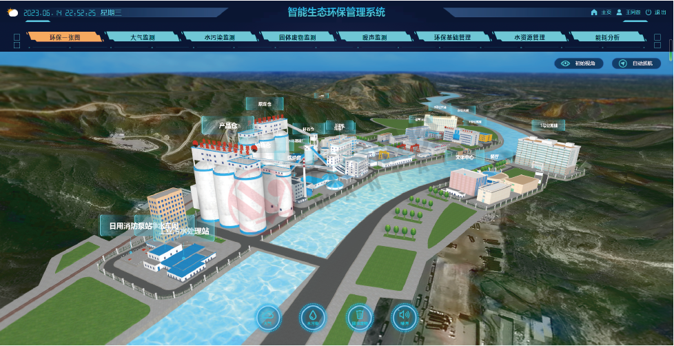 1.環(huán)保一張圖:通過三維模型立體化展現(xiàn)整個礦區(qū)環(huán)境監(jiān)測的空間布局,并將環(huán)保監(jiān)測的各個業(yè)務(wù)及其實時狀態(tài)通過數(shù)字化孿生應(yīng)用到場景中。支撐了環(huán)保業(yè)務(wù)的綜合決策。