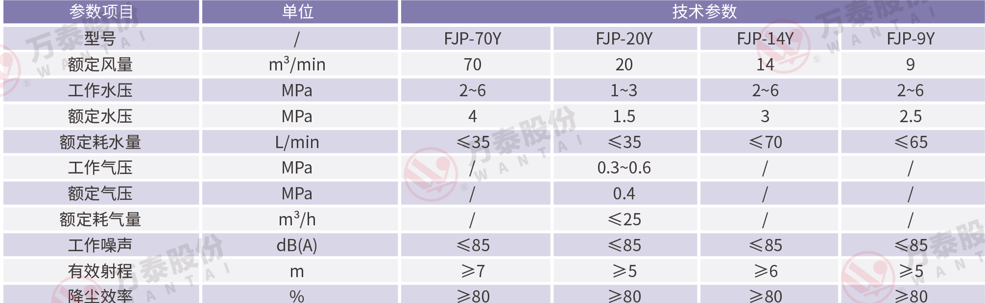 1. FJP系列礦用噴霧降塵風(fēng)機(JPK-3礦用水動力噴霧降塵器)用于皮帶巷道、回風(fēng)巷道、采煤工作面等地降塵。