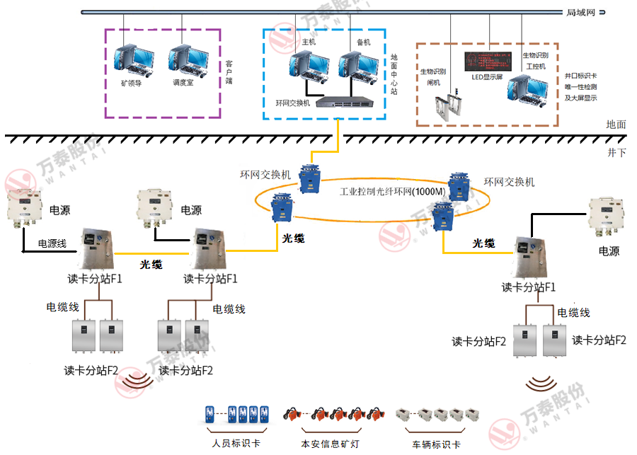 KJ1831J煤礦井下人員精確定位系統(tǒng)是淮南萬泰電子股份有限公司研發(fā)的基于UWB技術(shù),采用TOF+TDOA模式算法,通過厘米級精確定位、遠距離覆蓋、數(shù)據(jù)建模,實現(xiàn)煤礦井下人、車、物高精度實時定位管理和超前預(yù)警管理的新一代智能礦山精確定位系統(tǒng)。整個系統(tǒng)采用B/S架構(gòu),數(shù)據(jù)采集軟件,WEB軟件,數(shù)據(jù)庫都在服務(wù)器上運行,遠程客戶端只需要通過瀏覽器即可訪問定位系統(tǒng)。手機上通過App軟件訪問定位系統(tǒng)。