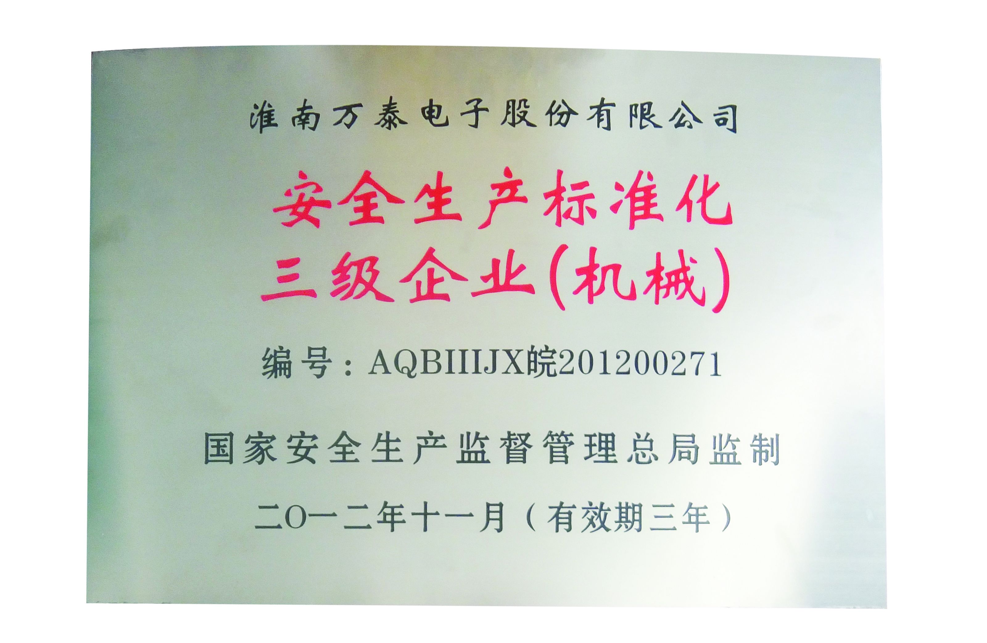 安全生產(chǎn)標準化3級企業(yè)