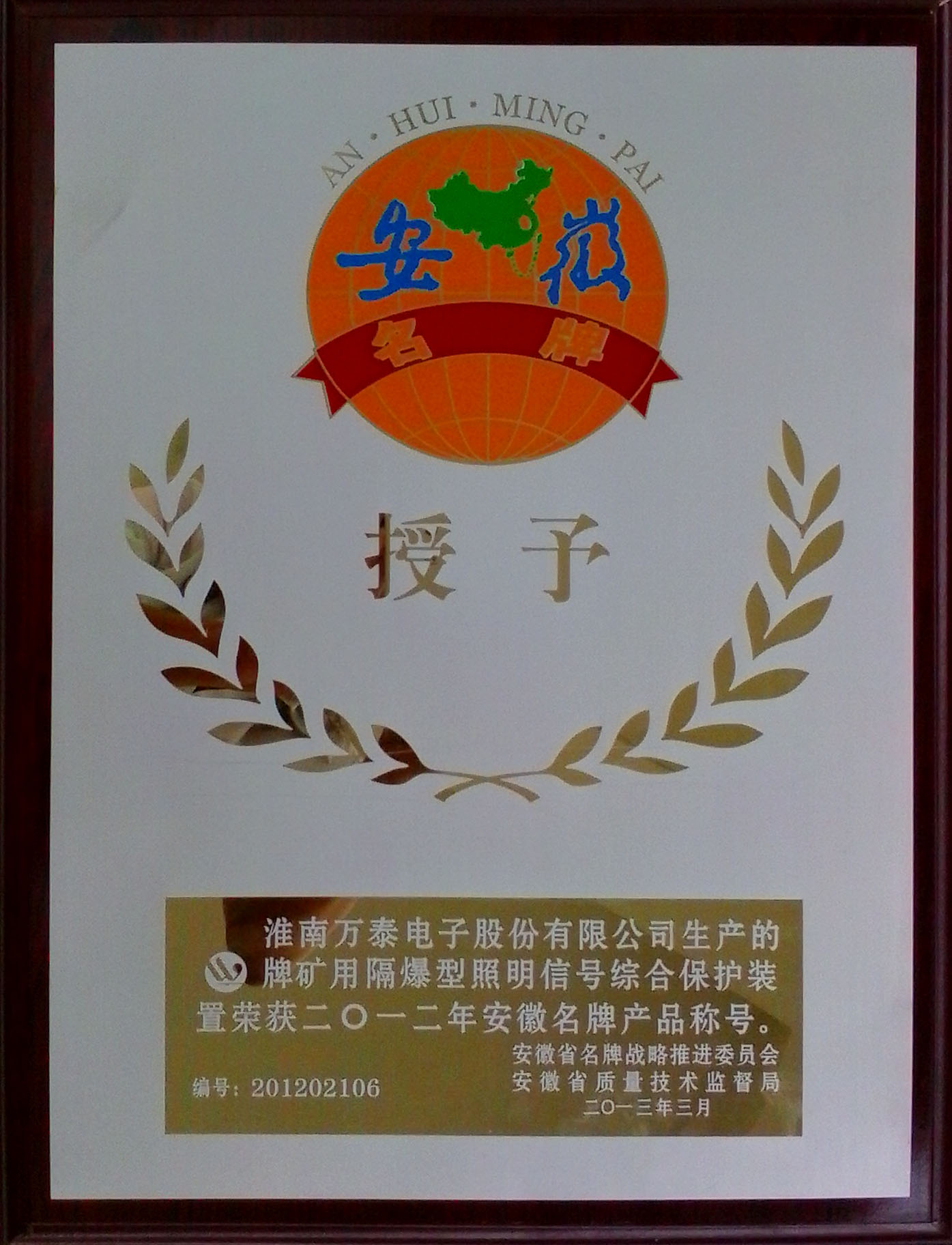 2013年3月安徽省名牌產(chǎn)品——礦用隔爆型照明信號(hào)綜合保護(hù)裝置