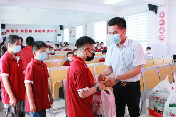萬泰愛心基金會成員與孩子們親切交流,關(guān)切地詢問孩子們學(xué)習(xí)情況,并把節(jié)日的禮物送到孩子們的手中,祝孩子們節(jié)日快樂,并勉勵孩子們要好好學(xué)習(xí)、增強本領(lǐng),長大后努力為社會作貢獻。