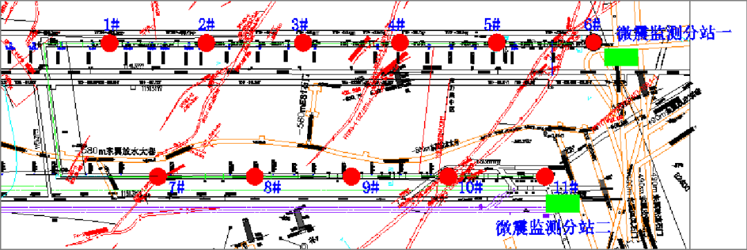共布設(shè)2臺6通道微震監(jiān)測分站,上、下順槽各一臺。共安裝11支單軸微震傳感器。