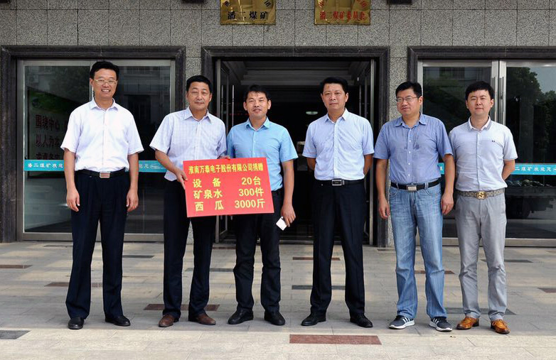 淮南礦業(yè)集團潘二礦發(fā)生井下大巷涌水事件后,萬泰電子作為淮南當?shù)剌^大的民企,時刻關注礦方情況。2017年8月11日上午,銷售總經理余子勇一行代表董事長余子先親赴潘二礦慰問,了解礦井受災和恢復生產情況。潘二礦礦長施祖龍、黨委書記汪先彬、黨委副書記邵輝、機電礦長時宗林陪同。